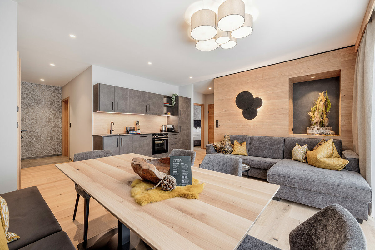 Die Peaks für sechs bis acht Personen, mit drei Schlafzimmern, stehen für ganz viel Platz. Für dich. Für deine ganze Familie. Für mehr Raum für alpine Urlaubserinnerungen. Gleichzeitig genießt du in einem diesem Aparment auch den Freiraum, den du für dich brauchst. Dank intelligenter Raumanordnung hat hier jeder seinen Platz – und am Ende des Tages trifft sich die ganze Familie auf dem 25m2 großen Balkon oder der 25 m2 großen Terrasse – oder chillt gemütlich vor dem Kaminofen, während draußen die Schneeflocken für Pulverschnee sorgen. Oder in der Sauna, zu der du ebenfalls freien Zutritt hast. Mit den Peaks-Apartments wird dein Familienurlaub im Ötztal in Tirol ein alpines Erlebnis, an das du lange zurückdenken wirst.