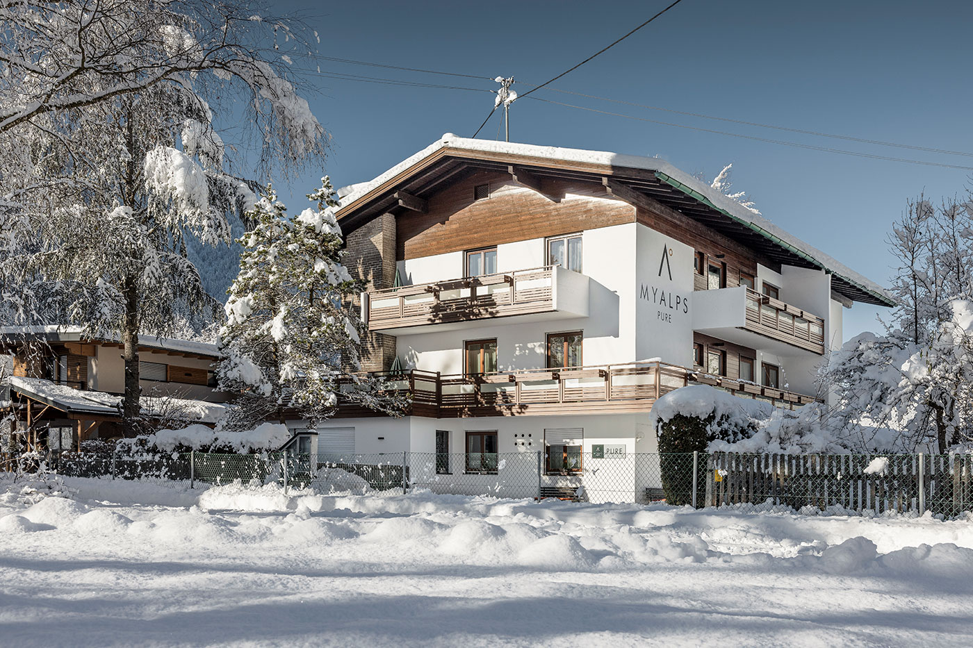 Dank der alpinen Lage des MYALPS Pure umgibt dich hier nichts anderes als Natur, weite Felder und Berge am Horizont. Gleichzeitig ist die Hauptstraße mit Bushaltestelle, Shops und allem, was du zum Leben in den Bergen brauchst, nur eine Minute zu Fuß entfernt. Jedes einzelne der fünf gemütlichen Apartments ist mit einem eigenen Balkon zum Bergpanorama-Genießen ausgestattet. Ebenfalls mit dabei sind ein Parkplatz, Skiraum, kostenloses WLAN und die exklusiven MYALPS Extras.