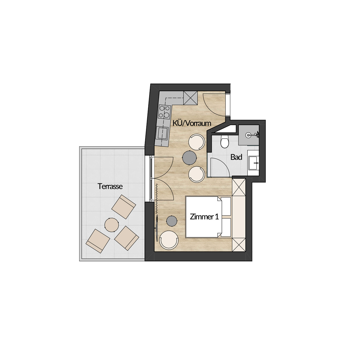 - Apartments der Kategorie Garden befinden sich im EG unseres Hauses