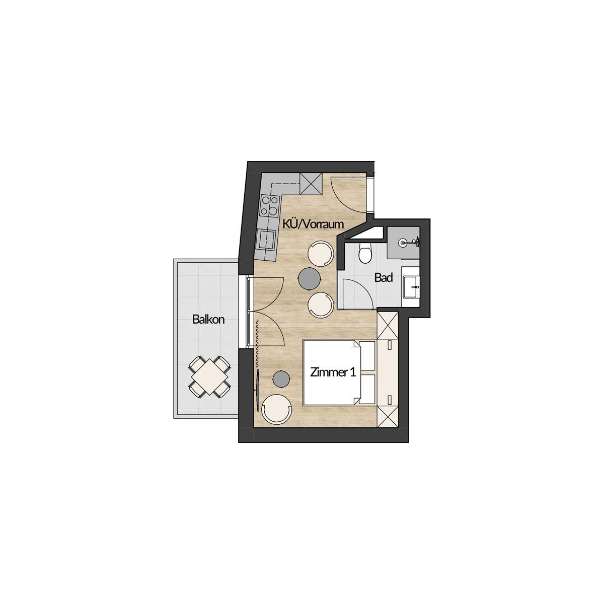 - Apartments der Kategorie Balcony befinden sich im 1. und 2. OG unseres Hauses