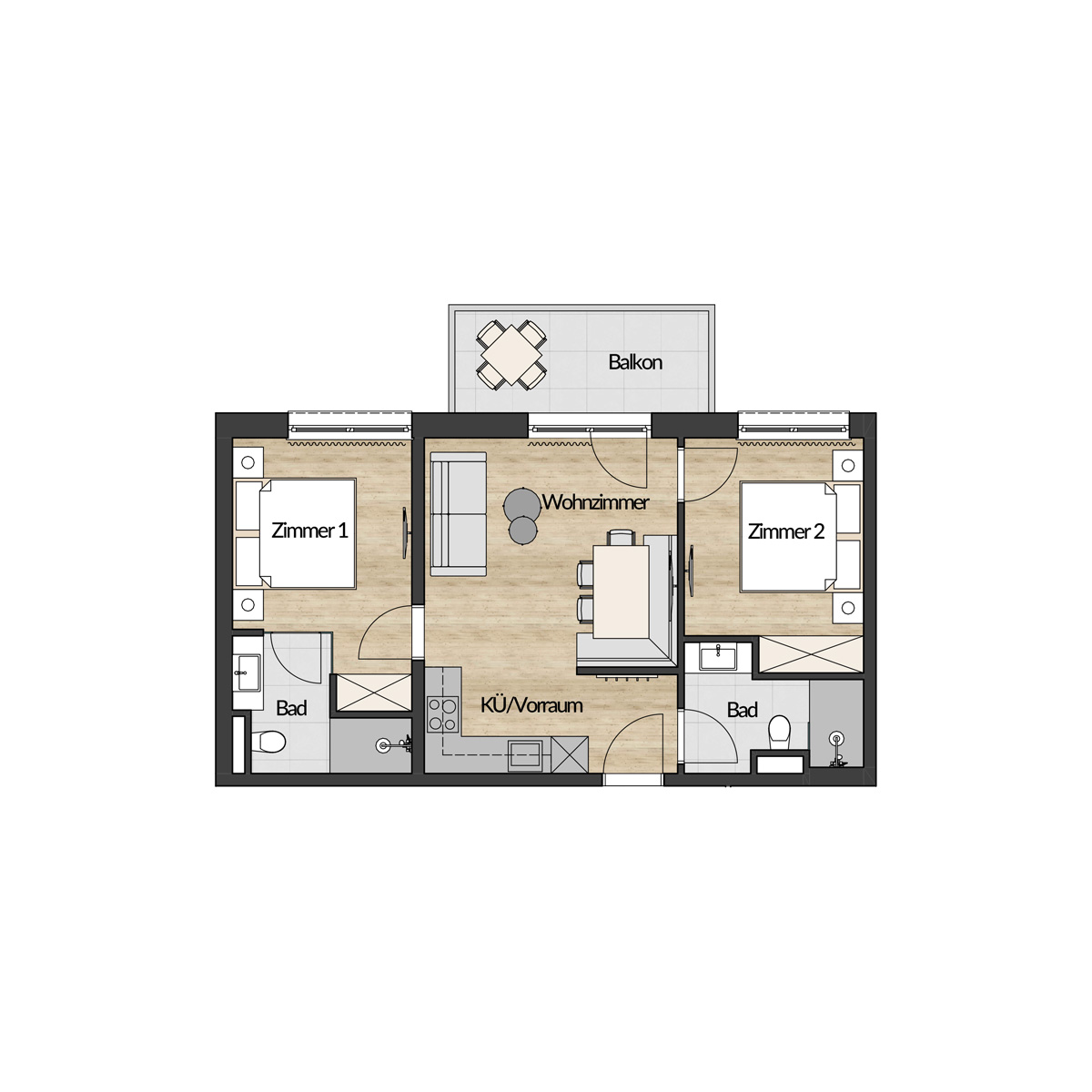 - Apartments der Kategorie Balcony befinden sich im 1. und 2. OG unseres Hauses
